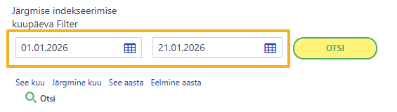 Filter „Järgmise indekseerimise kuupäev” täidetakse automaatselt praeguse kuuga.