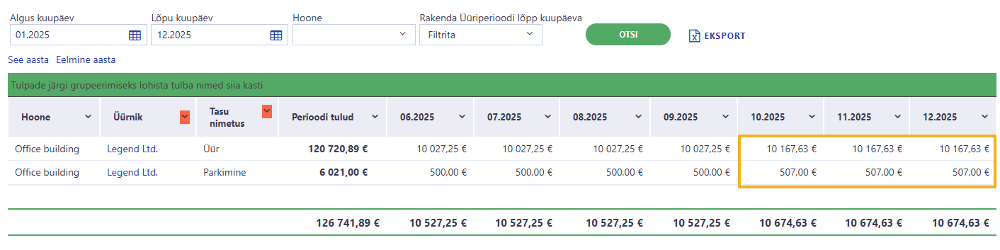 NB! Palun arvestage, et parandusridu ei kuvata tulude aruandes eraldi. Selle asemel on need liidetud jaanuarikuu üüriga.