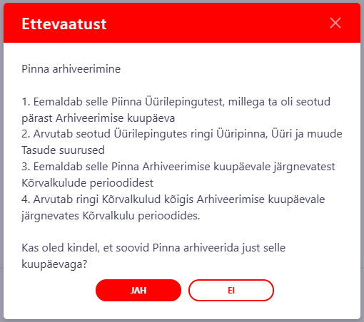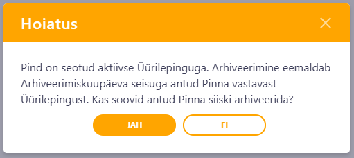 NB! If the space is linked to the Rental Contract, you will get the Warning message: