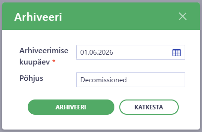 NB: Because archiving is irreversible, make sure the date and reason are correct before confirming.